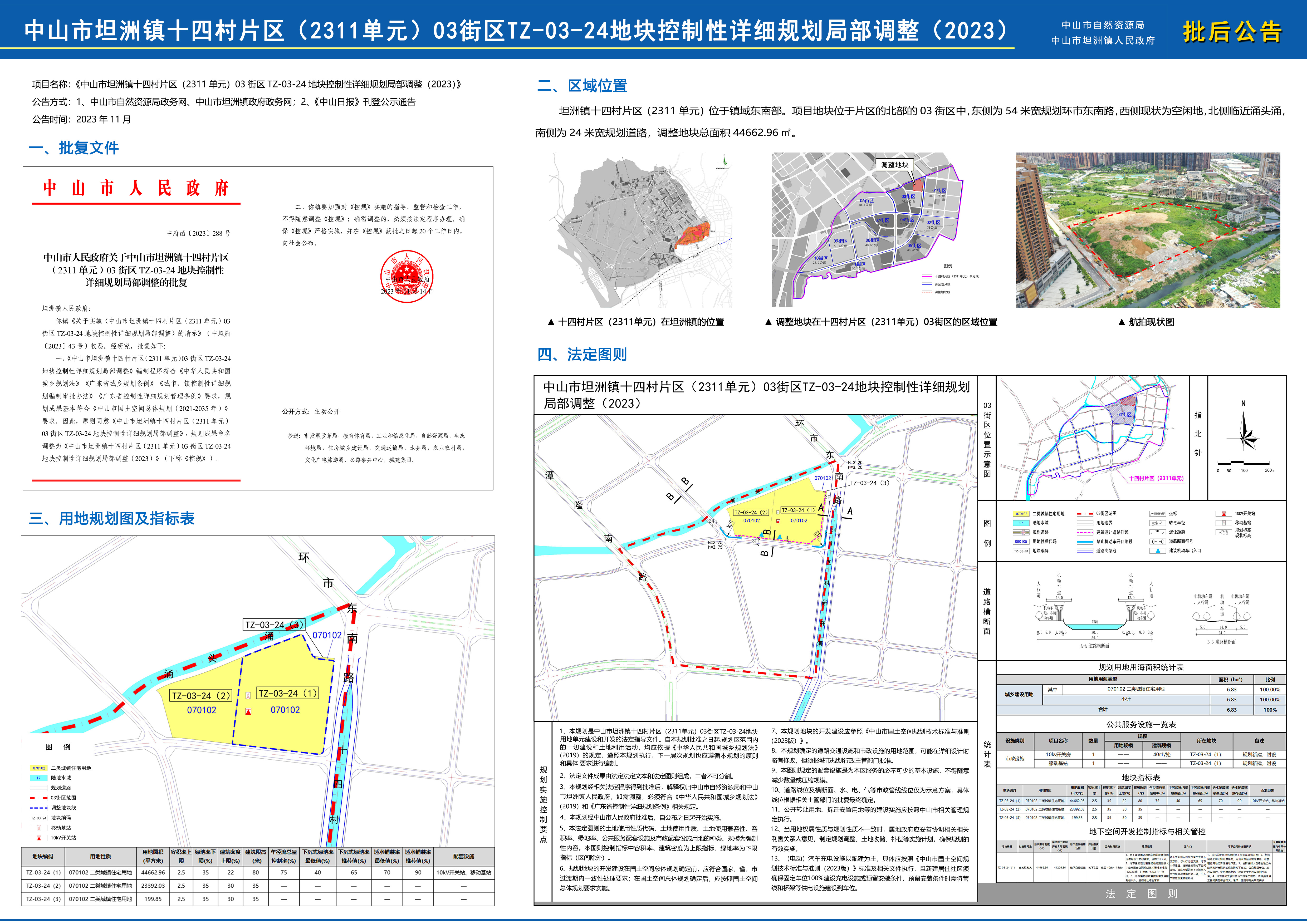 附件:《中山市坦洲镇十四村片区(2311单元)03街区TZ-03-24地块控制性详细规划局部调整(2023)》批后公告