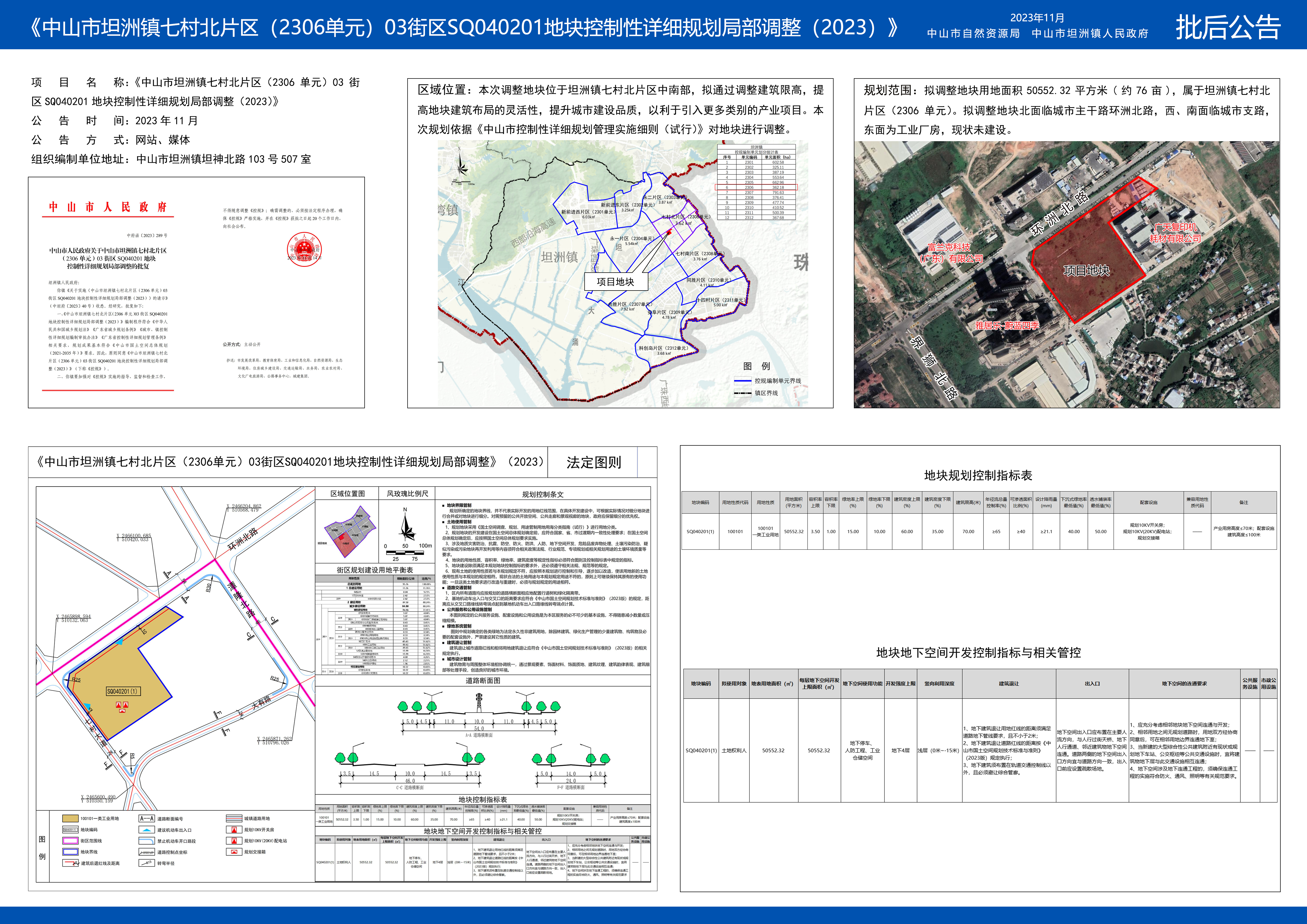 附件:《中山市坦洲镇七村北片区(2306单元)03街区SQ040201地块控制性详细规划局部调整(2023)》批后公告