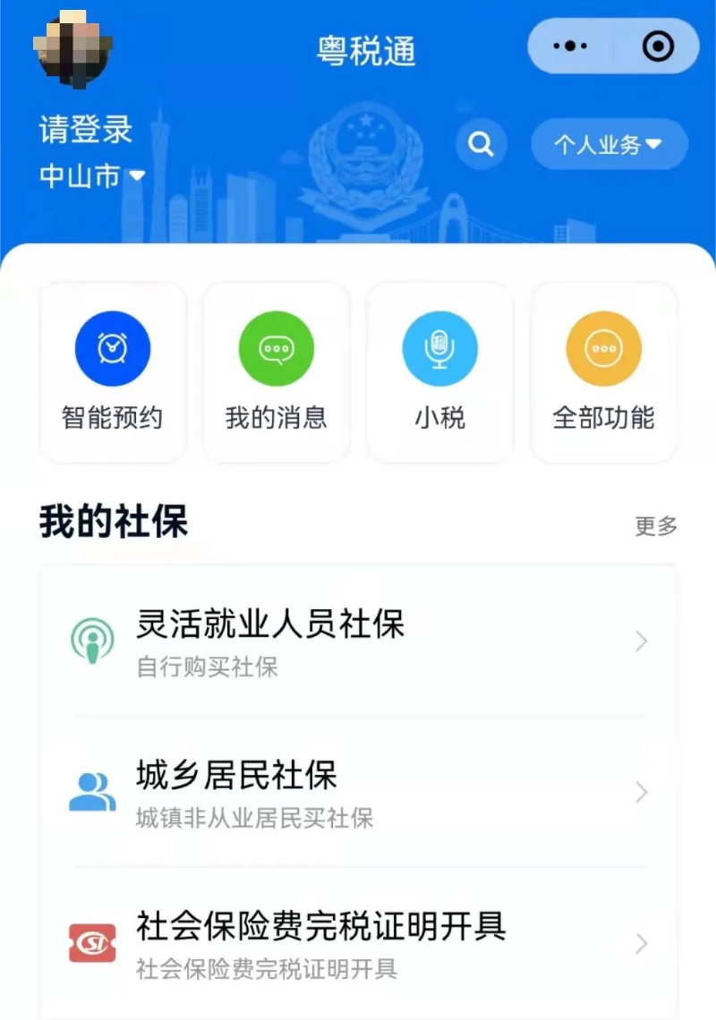 第一步:微信搜索“粤税通”小程序,打开点击左上角,完成登录