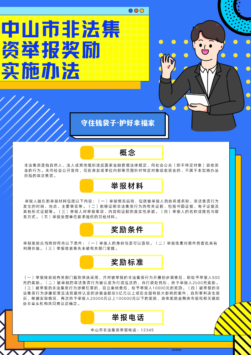 (一)建议对照银行贷款利率和普通金融产品的回报率是否过高,多数情况下明显偏高的投资回报很可能就是投资陷阱。我国规定,超过国家规定贷款利率4倍以上的不受法律保护,可作为判断回报是否过高的参考。天上不会掉馅儿饼,高收益和高风险是并存的。犯罪分子的目的是骗取钱财,一个企业正常的年利润一般不会超过20%,超高利投资回报分配不可能维持太久,其中必有非法诈骗行为,“快速致富、高回报、零风险”极有可能是请君入瓮的投资陷阱。广大投资者和居民一定要增强分辨能力,挡住高额收益的诱惑,切莫贪图高利,参与非法集资活动,不要相信“免费的午餐”。