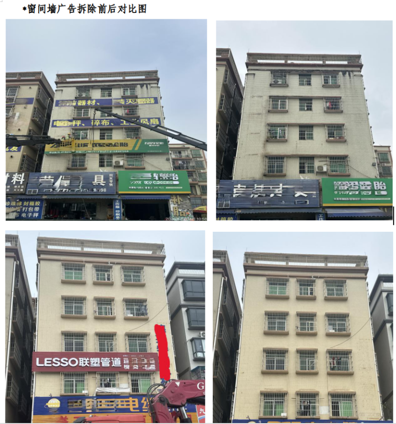 2025年2月以来,镇综合行政执法局依法依规对各类违规设置、存在安全隐患立面广告(招牌)进行全面排查整治,共排查发现并整治违规商业广告、招牌等设施104个,清拆广告909平方米,并对需整改的广告(招牌)设置人进行了相关法律法规和安全宣传教育。通过本次整治行动,进一步增强了广告(招牌)设置人安全理念,明确设置人安全生产监管责任和企业主体责任。