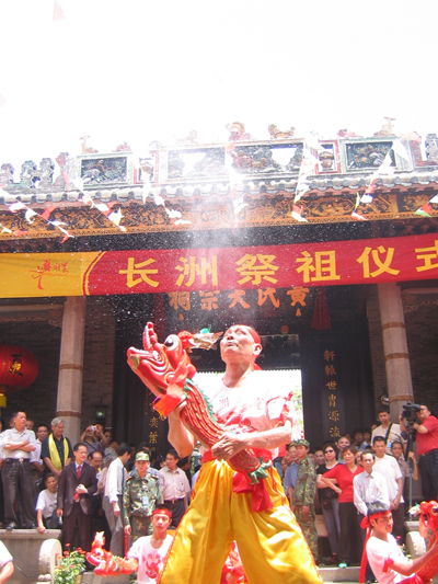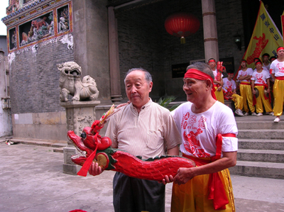 我国著名民俗学专家乌丙安教授来到长洲观看醉龙舞