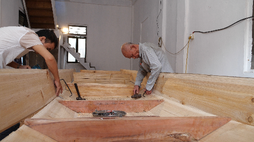 罗文希和罗志明父子一丝不苟地做好每个造艇工序