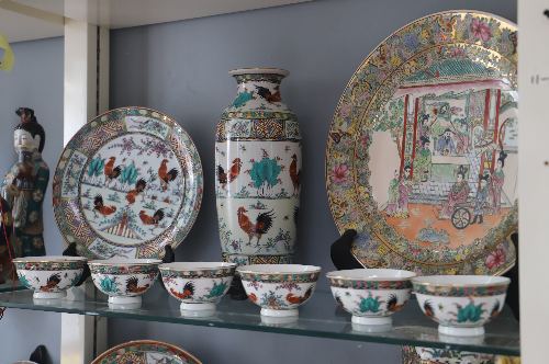 广州织金彩瓷,也叫广彩、广州彩瓷,指广州烧制的织金及其采用的低温釉上彩装饰技法,是一种产自广东省广州市的地方传统手工艺品,由珐琅彩和粉彩发展而来,色彩多以红、绿、金为主,成品外观色彩鲜艳绚烂而又大方得体,耐看非常。广彩瓷器品种繁多,主要包括日常用具、陈设、文具、娱乐用品、宗教法器等。