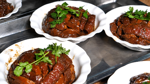 良都扣肉制作技艺是一种以猪肉为主要原料,将经过多道繁琐工序处理的猪肉倒盖于碗中的一种菜肴制作技艺。良都扣肉是中山南区当地家喻户晓的一道名菜,通过选料、定型、上色、插针、油炸、浸漂、冲漂、焖煮等多道繁杂的工序制作出来的扣肉,外表色泽金黄,香气扑鼻,入口肥而不腻,软糯入味。