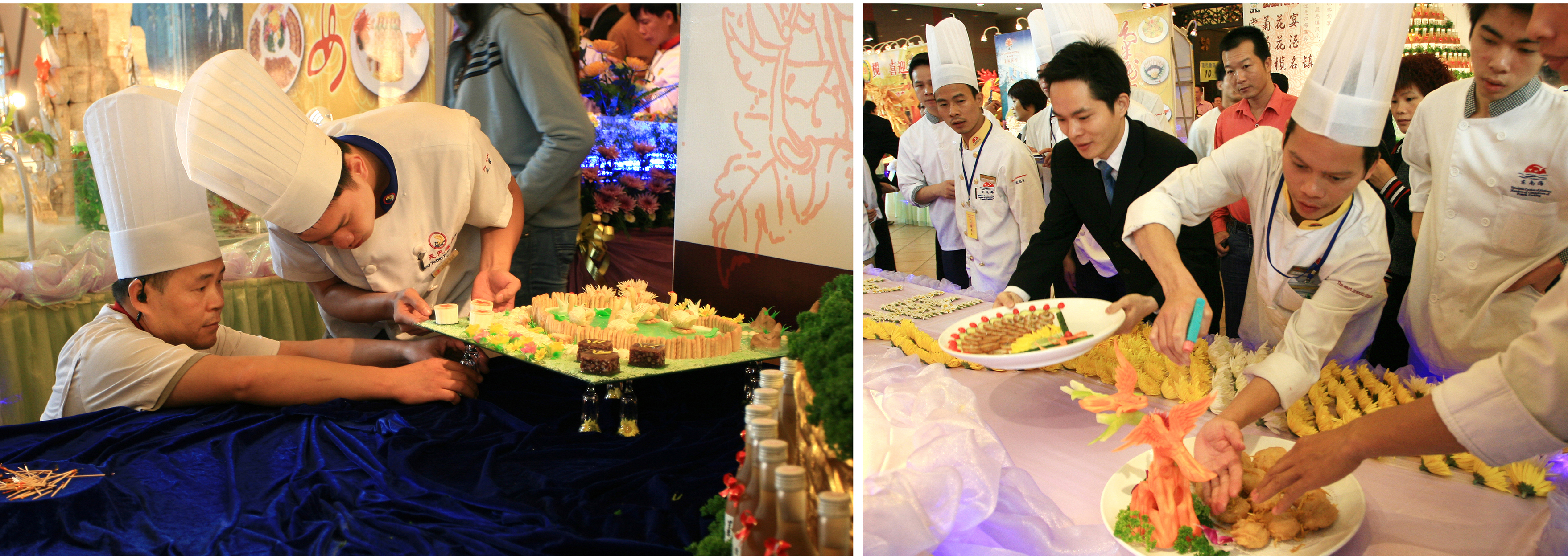 小榄人善用菊花作配料,制作出包括菊花肉、菊花水榄、菊花八宝糯米饭、荼薇蛋卷、荼薇酒等地方小食,并制作出菊花鱼球、菊花三蛇羹、菊花鱼头羹等的菜式拼成为“菊花宴”。菊花宴传至海内外而传誉。每年秋天菊花盛开时节,小榄当地都会举行菊花美食评比活动,推动菊花传统饮食文化的传承。