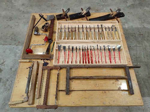 这门技艺使用的器具为功夫凳、锯、斧、刨、凿、刻刀、墨斗、尺(含曲尺、水平尺)、划线器、木工笔、砂纸(布)、刷子等常用的木作工具和耗材。常使用的原料为樟木、鹿角、马尾等。因樟木防虫蛀,且有独特的芳香,使其制品自带一种庄严感。龙头上的角是真鹿角,公的龙头使用的鹿角形态粗壮、分支少,母的龙头使用的鹿角形态略细、分支略多。常用涂料为金、银、黑、白、红、绿等油漆,公龙用金色,母龙用银色。