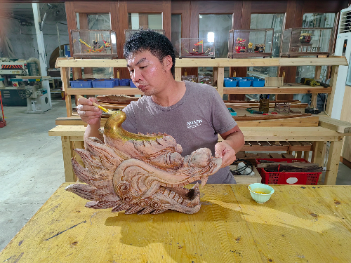 制作龙船头的过程分为选料、开料、画样、开大样、打坯、精雕、修光、打磨、上色、装饰等步骤。因木料形状不一,故业者需具备美术设计的素养和精雕细作功夫,因材施工,才能打造出形态各异、栩栩如生的作品。制成品主要有三个方面的用途。第一、作为装饰品使用,常用作吉祥物。第二、安装在龙舟上,作为龙舟的首尾。第三、舞木龙使用的器具。