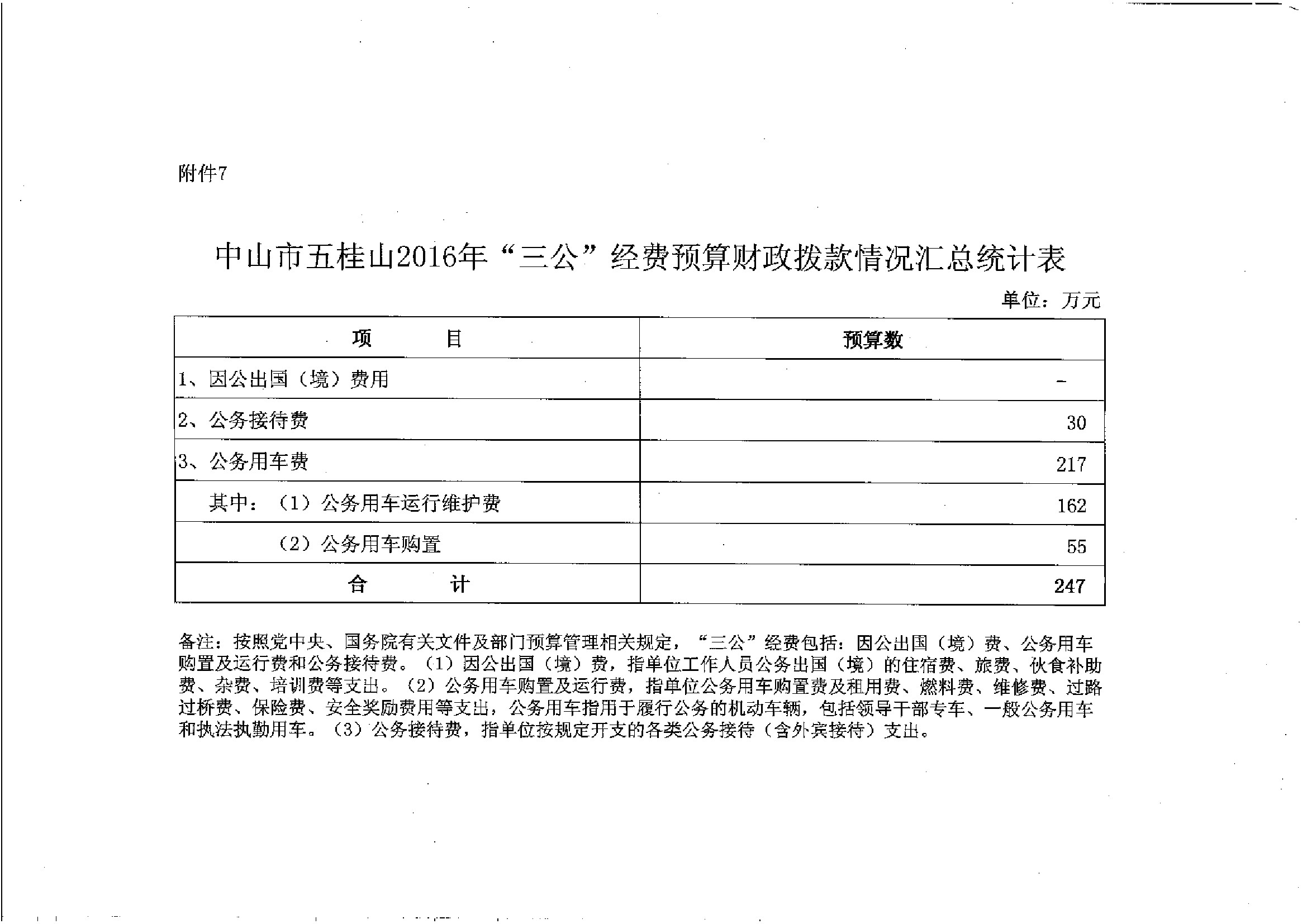 中山市五桂山2016年“三公”经费预算财政拨款情况汇总统计表