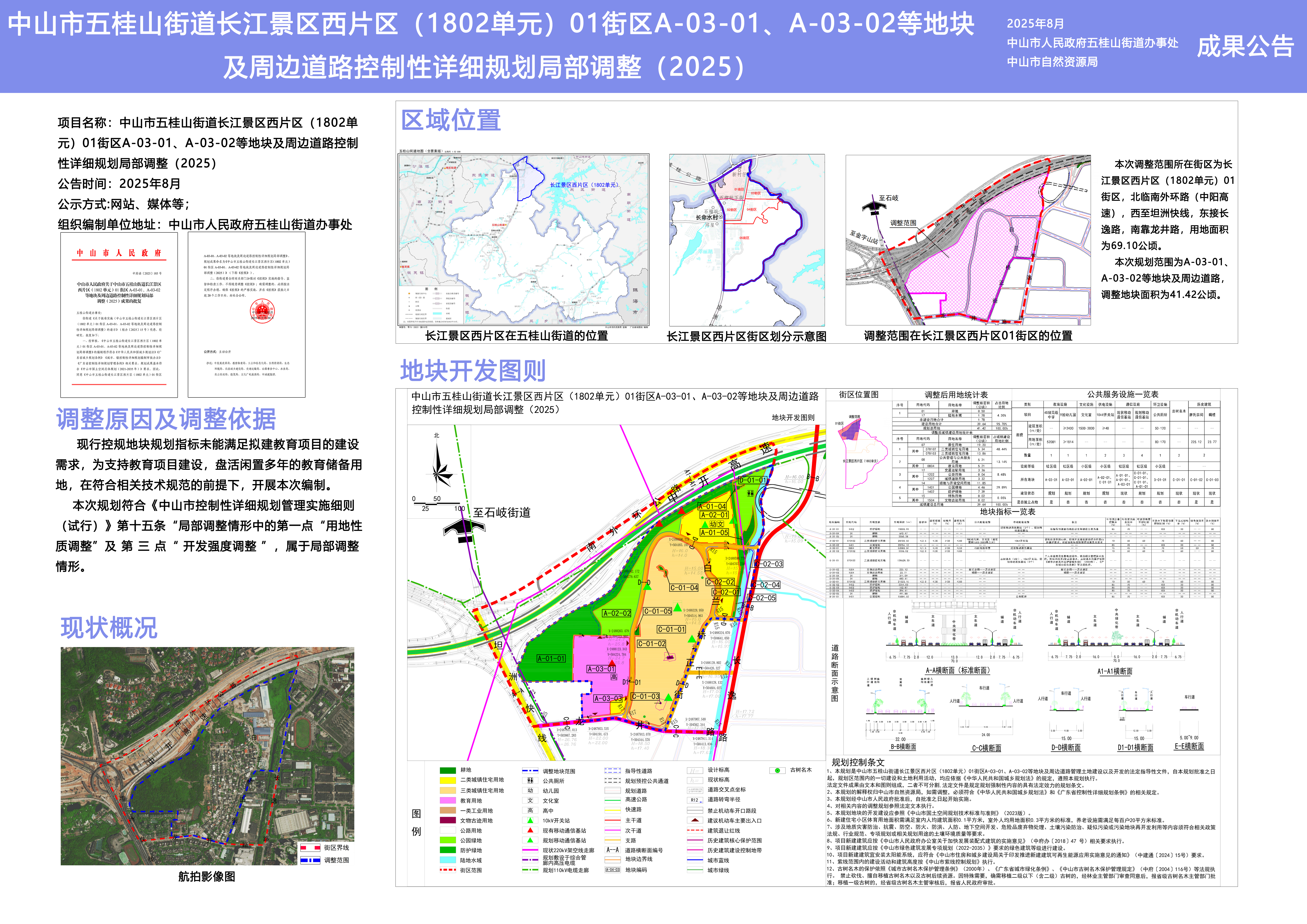 附件:《中山市五桂山街道长江景区西片区(1802单元)01街区A-03-01、A-03-02等地块及周边道路控制性详细规划局部调整(2025)》批后公告