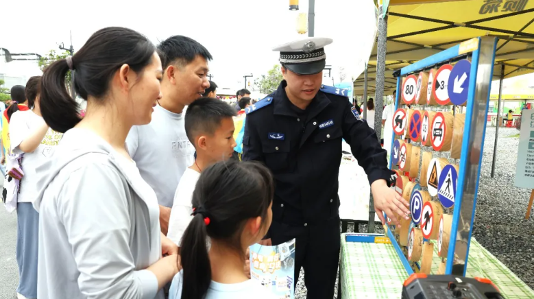 在青年志愿者服务集市,消防、公安、医院等单位的团组织及青年文明号集体组成便民服务摊位,通过游戏、互动体验等形式,宣传交通安全、普法教育、禁毒防诈、脊柱健康等知识。