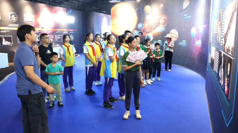 在绿美手工体验区,大家可亲身体验拓印等非遗文化,品尝小榄特色荼薇雪糕和菊花雪糕,感受传统与创意的交融。科普馆绿美研学区内,学生们通过参观学习,深入了解我国航天事业发展历程,在航天育种种植体验中感悟科技与绿色的融合之美。