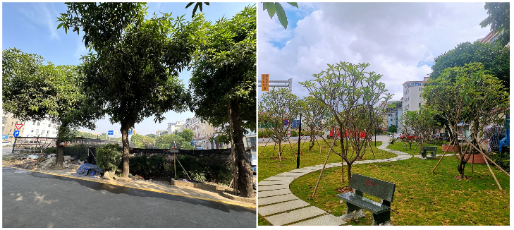 绩东二社区加快推进绿美生态建设,2024年上半年,对辖区内3处闲置土地进行盘活改造,建成风景秀丽的“四小园”。该3处闲置地在改造前杂草丛生、杂物乱堆等,影响周边群众居住环境。社区党委联合驻点部门、社区党员志愿者等清除杂草杂物,并铺上草坪、种植树木,构成一道生态宜居美丽风景线。