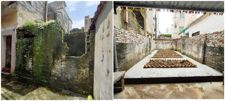 新市社区充分发挥“我为群众办实事”党建引领作用,因地制宜对宁丰巷10号、诗礼街14号的空置屋地进行“四小园”升级改造。拆除残旧建筑结构、清除杂草垃圾,并利用原有的青砖砌墙,铺装田地围挡和走道等,合理划分种植区域。