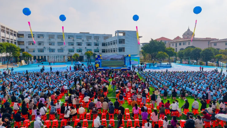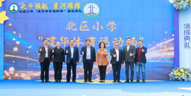 1月29日上午,小榄镇北区小学举行建华体育运动场落成典礼暨“北斗领航,星河璀璨”主题文艺展演。镇党委委员梁锐强,宣传和教体文旅办、中山市建华慈善基金会相关负责人与全体师生及校友、家长、社区代表共同见证这一校园盛事。