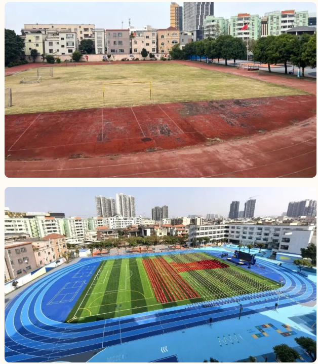 北区小学的运动场建成于2003年,面积1万余平方米。历经20多年使用,运动场地面出现严重老化、残破现象,不仅影响使用体验,更存在明显安全隐患。场地周边草坪还孳生红火蚁,曾发生学生被咬伤的情况。修缮北区小学运动场成为小榄镇2025年慈善万人行筹款项目后,众多热心单位及个人积极出资、鼎力支持。项目总造价370多万元,其中中山市建华慈善基金会出资320多万元。经过三个月的升级改造,如今,塑胶跑道、足球场草坪及周边的附属设施已焕然一新,为学校正常教学活动的开展和学生日常体育锻炼提供了安全、优质的环境。
