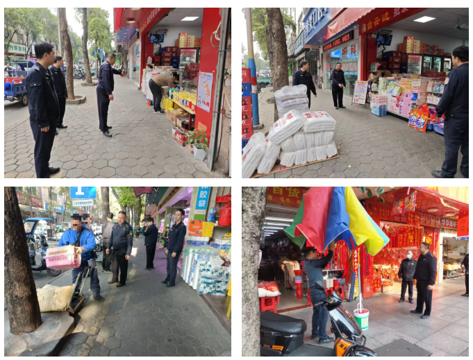 率先联合试点新市社区,将文田路列为重点整治路段,开启每周步行执法专项行动。针对商铺占道经营、门前杂物乱堆乱放等常见市容乱象,逐户耐心劝导、督促整改。同时,向商户和过往群众细致讲解城市管理法律法规,引导商户自觉履行“门前三包”责任,让文明经营、规范管理的理念深入人心。