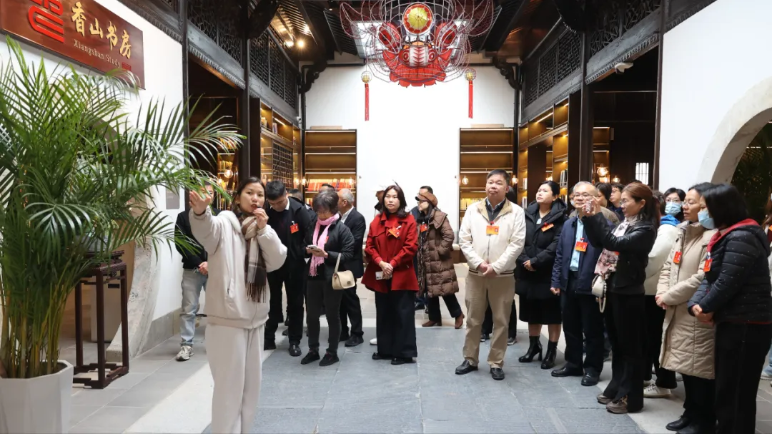 在宁徽园,代表们重点考察了徽派建筑文化活化利用、航天生物科普基地、古董车馆等特色业态,询问资源与旅游体验的融合路径与成效,深入了解项目在丰富文旅供给、打造特色标杆、拉动区域消费方面的积极作用。
