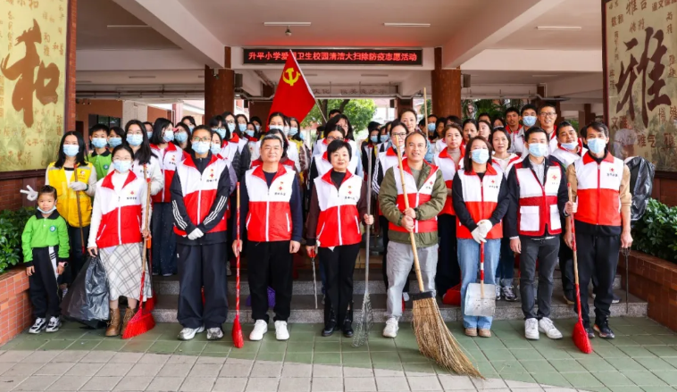 小榄镇升平小学请来专业消杀人员,对绿化带实施药物喷洒,保洁人员重点对下水道进行药物投放以及疏通下水口,有效控制病媒生物孳生。学校还组织党员、团员、学生及家长代表近80人开展爱国卫生运动,家长与老师以身作则,与学生携手清理枯枝落叶和各类淤积杂物,形成了家校协同、多方联动的生动局面。