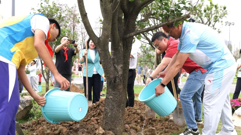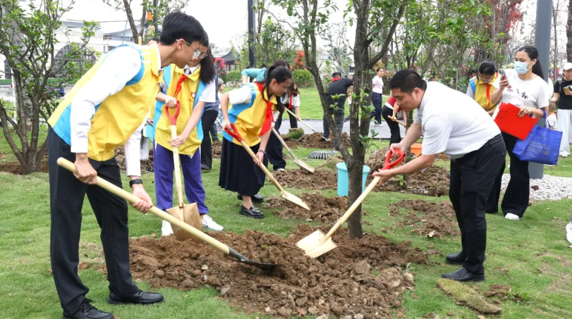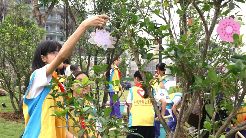 镇党委委员、团委书记梁锐强,榄菊集团产业发展中心总经理李锐斌等领导嘉宾共同主持活动启动仪式,并与青年志愿者携手栽下“绿美青年林”,挂上心愿卡,为菊城添新绿。