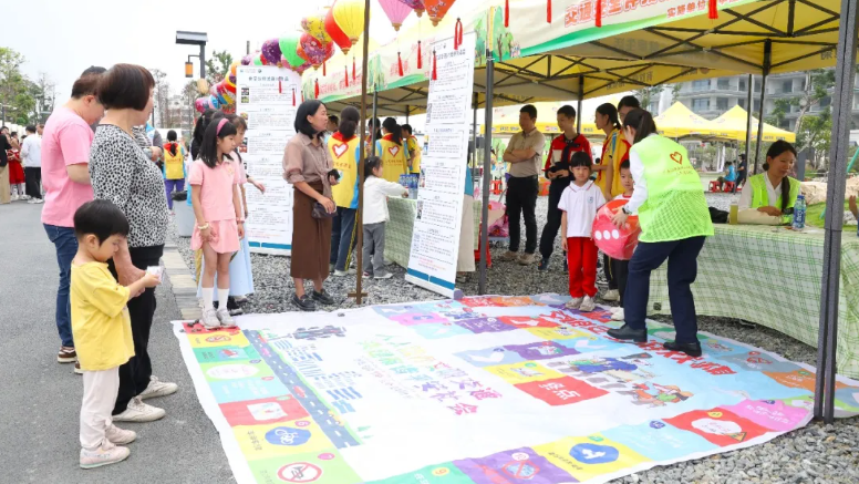 在青年志愿者服务集市,消防、公安、医院等单位的团组织及青年文明号集体组成便民服务摊位,通过游戏、互动体验等形式,宣传交通安全、普法教育、禁毒防诈、脊柱健康等知识。