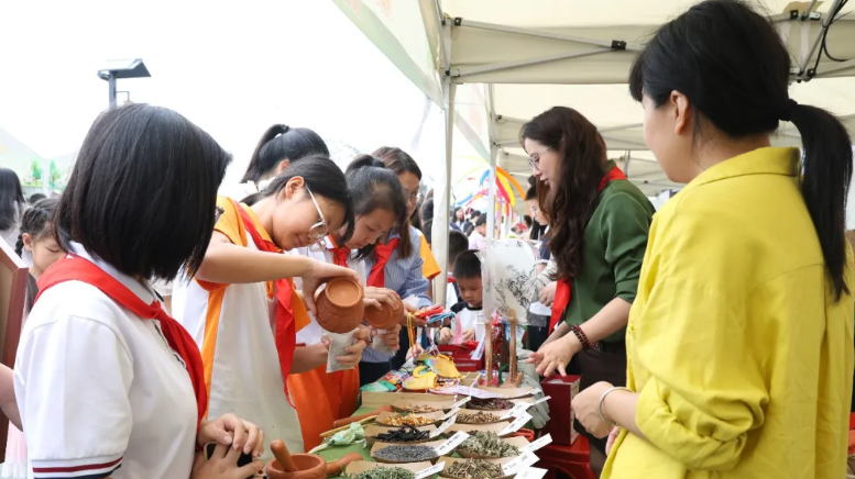 在绿美手工体验区,大家可亲身体验拓印等非遗文化,品尝小榄特色荼薇雪糕和菊花雪糕,感受传统与创意的交融。科普馆绿美研学区内,学生们通过参观学习,深入了解我国航天事业发展历程,在航天育种种植体验中感悟科技与绿色的融合之美。