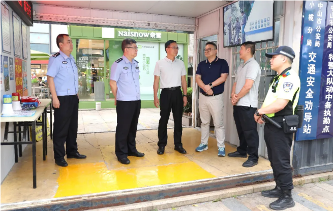 随后,赵锡雄来到小榄大信新都汇交通安全劝导站,实地检查交通安全劝导工作落实情况。他强调,要常态化开展电摩交通安全宣传劝导活动,紧盯头盔规范佩戴等关键环节,持续普及交通安全知识,引导群众自觉遵守交通法规,切实降低道路交通安全风险,全力守护群众出行安全。