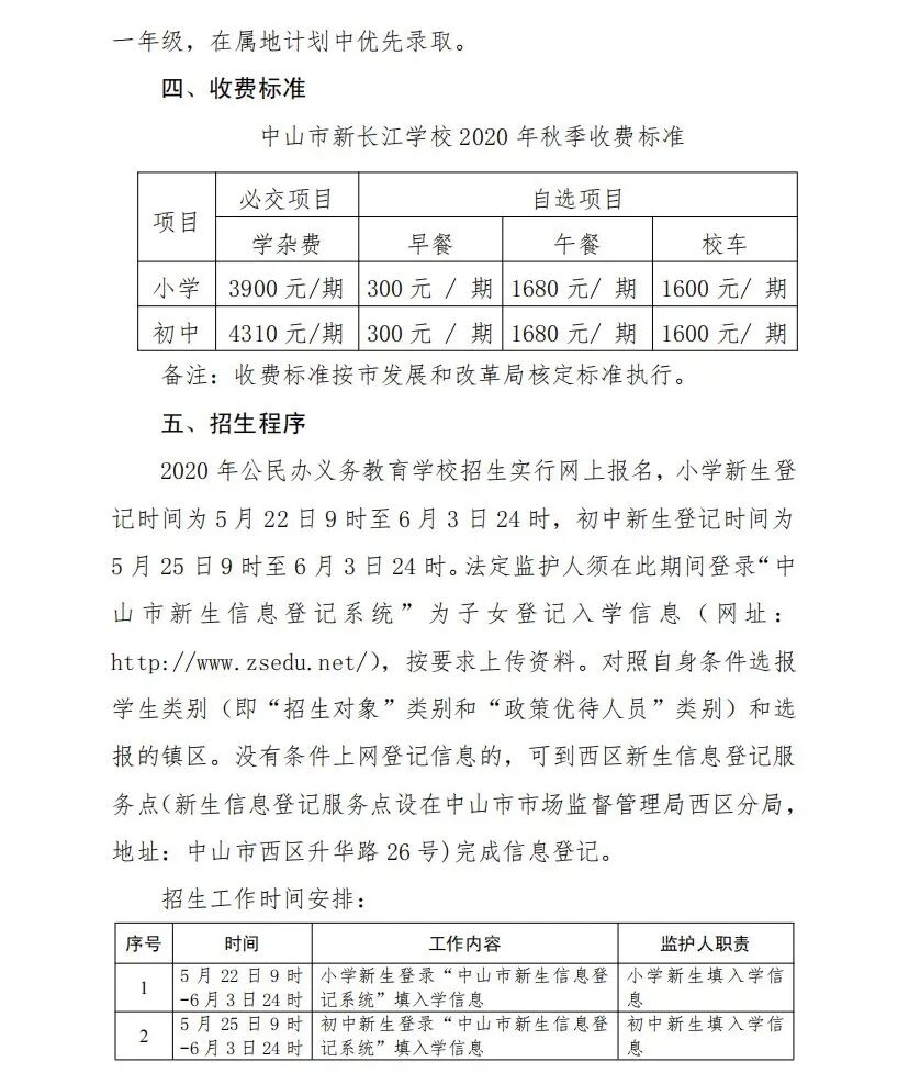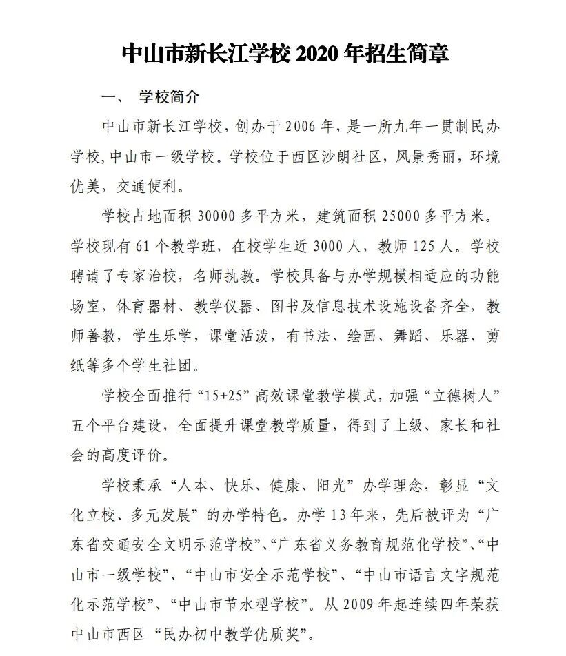 中山市新长江学校2020年招生简章