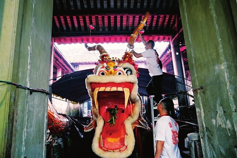 ▲After the parade, the long dragon is put in an ancestral hall in Haotou Village and waits for the parade next year. (Photo by Sun Junjun)