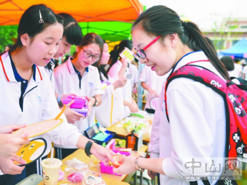 The picture shows the flea market at Zhongshan Overseas Chinese Middle School Cultural Festival.
