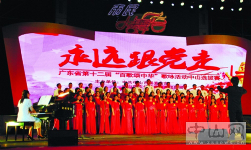 Finals of Zhongshan trials for the 12th "Singing for China" of Guangdong Province was held on the evening of Jun. 25 at the square of Zhongshan Culture and Arts Center. The final was sponsored by the Propaganda Department of Zhongshan Party Committee and Zhongshan Bureau of Culture, Broadcasting and News. After fierce competition, four teams including Zhongshan Choir were shortlisted and will compete in the provincial final on behalf of Zhongshan. The singing activity aims to spread positive energy and to salute the 95th anniversary of the foundation of the Communist Party of China and the 80th anniversary of the victory of the Long March.