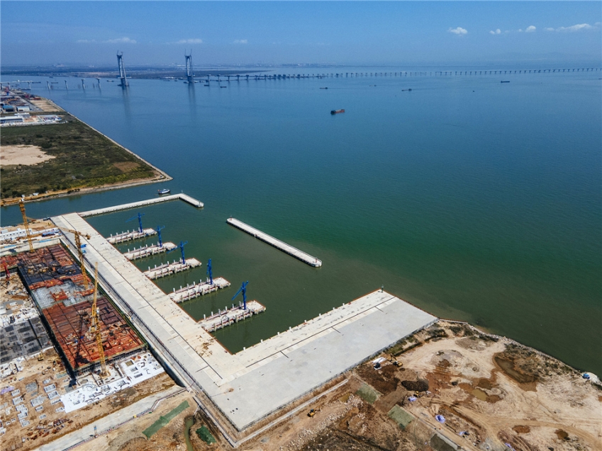 The new Zhongshan Port passenger terminal under construction in Tsuihang New District.