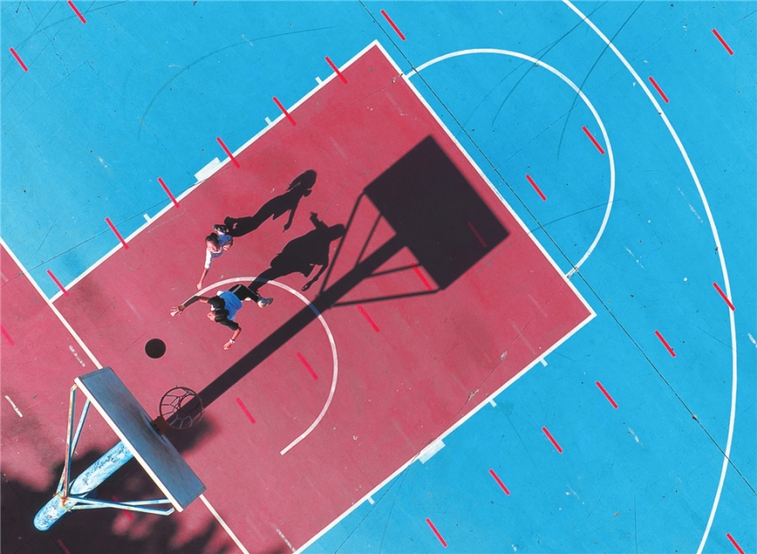 October 2, 2022. Two little girls play on the basketball court under the bright sunshine in Kuchong Village, East District. [Photo by Chen Liwei]
