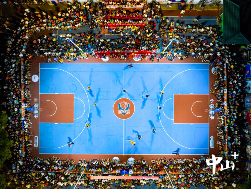 Basketball Feast (Second prize): On the night of July 22, the final of the 2023 North Zhongshan Basketball League took place in Xiaolan Town's Lianfeng Party Building Park. (By Jian Jianwen)