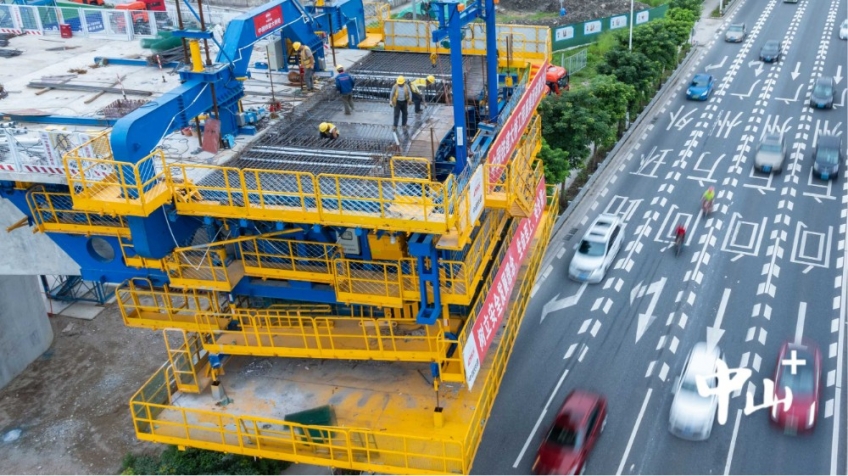 Construction of Railway Section in Zhongshan: May 29, at the construction site of the Shenzhen-Jiangmen Railway Zhongshan section, workers are busy with their tasks. (By Zhuo Jianghua)