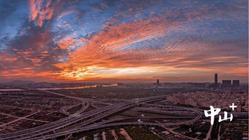 Intoxicating Red Glow: July 25, the sky over Zhongshan resembles a magnificent scroll. (By Li Yan)