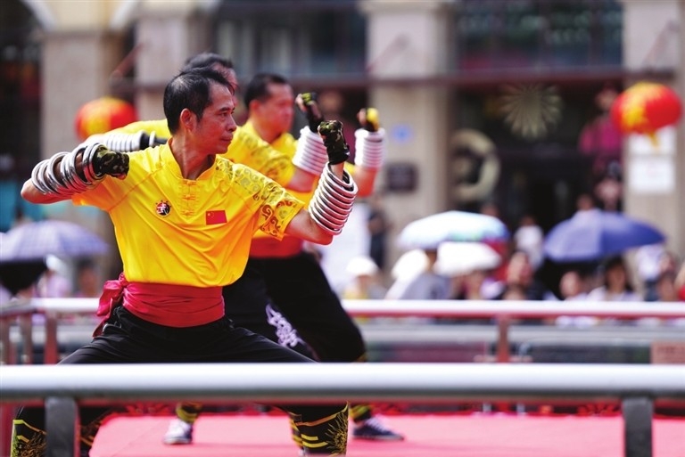 A performer interacts with the audience during the intangible cultural heritage parade. (Photo by Chai Chai)