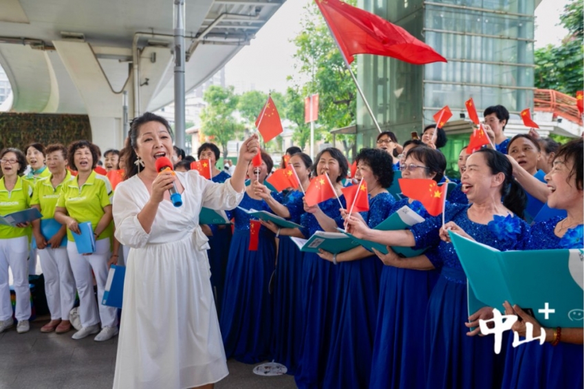 Ode to Motherland: September 28, over 600 people in Zhongshan participate in a chorus activity to sing praises to the motherland. (By Liu Minghai)