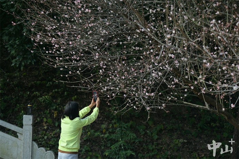 In recent days, the plum flowers blossom at Zhongshan Arboretum. The pink flowers bloom all over the trees, emitting a fragrant aroma.