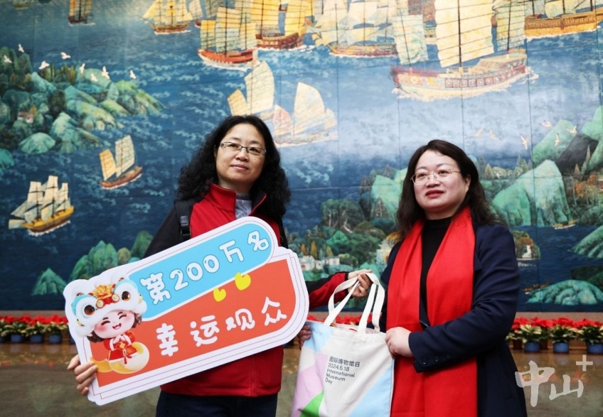 Surrounded by the museum staff, she received a commemorative gift bag. "I am so surprised and honored to receive the good fortune on my first visit to Zhongshan!" Yang smiled and said.