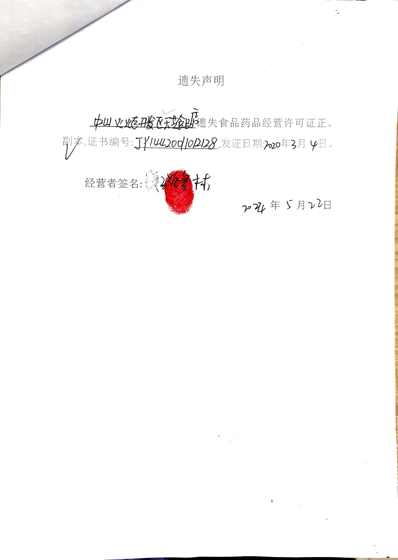食品药品经营许可证遗失声明(中山火炬开发区二华食店、中山火炬开发区山津食品店、 中山火炬开发区玉芝食品店、中山市火炬开发区名兴百货店、中山市九天揽月音乐餐厅有限公司)