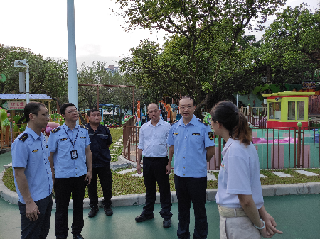 ▲党组书记、局长高培鹏到紫马岭小马森林公园、富逸城等人员密集场所开展监督检查。