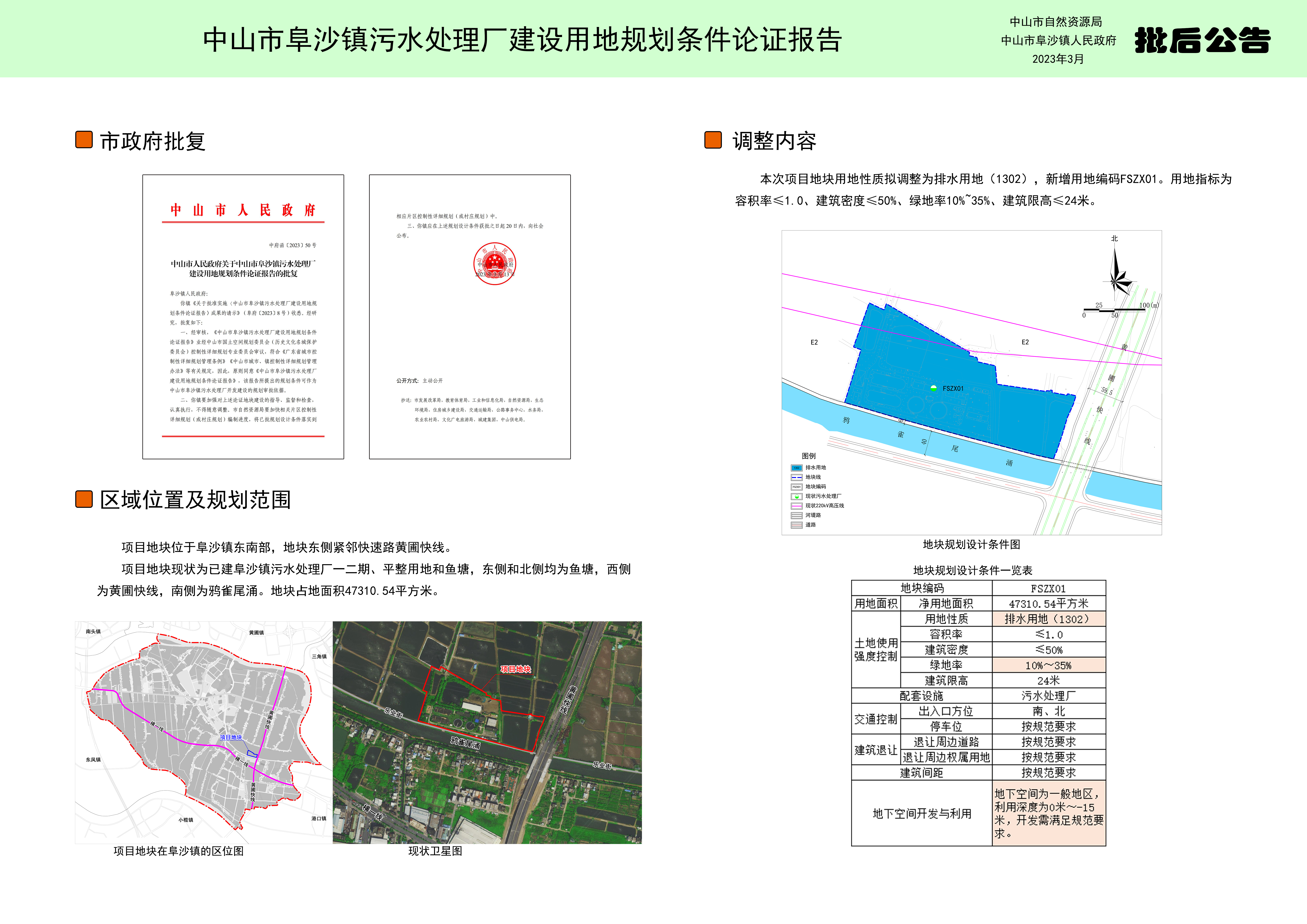 附件:1.《中山市阜沙镇污水处理厂建设用地规划条件论证报告》批后公告