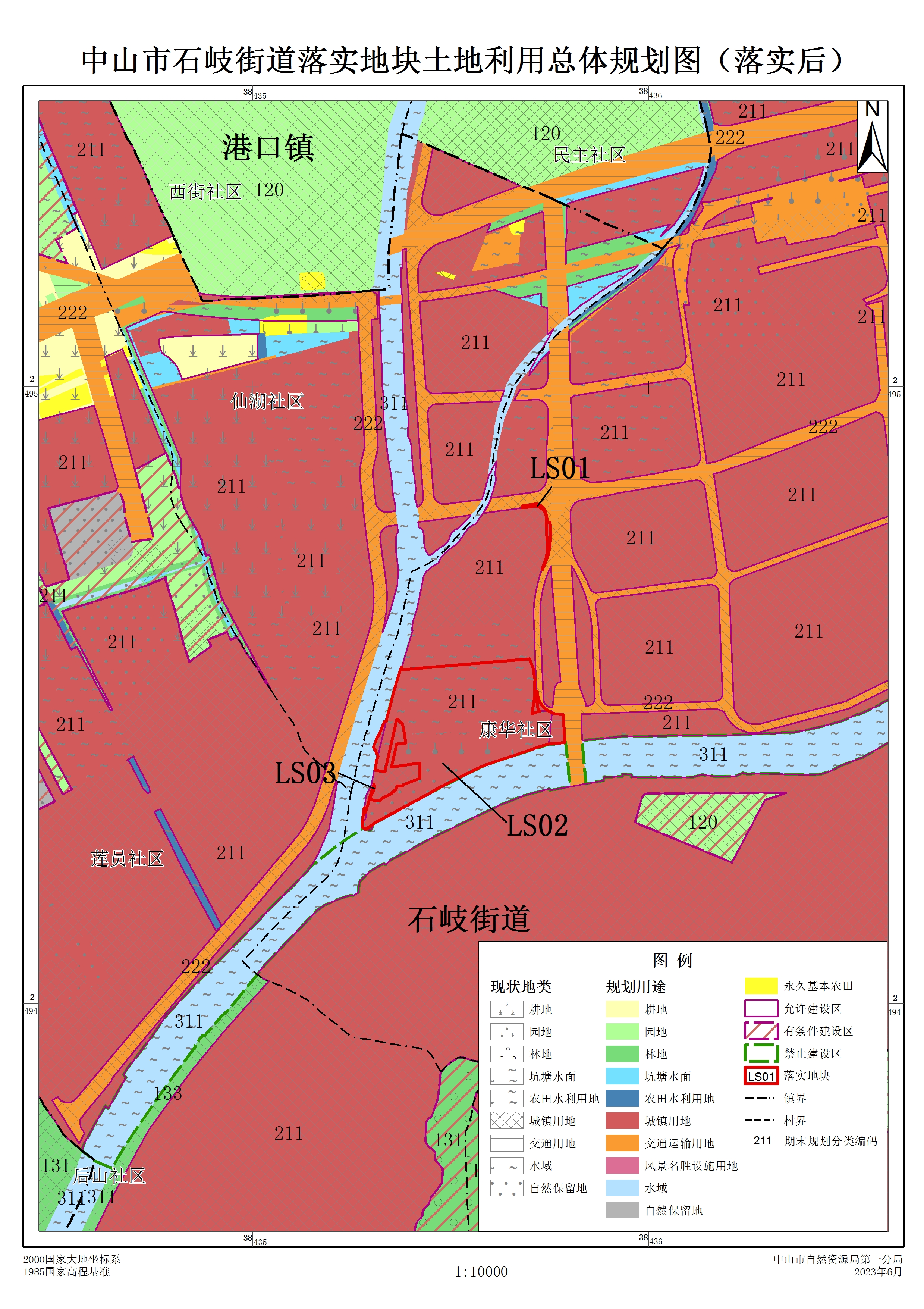 附件:中山市石岐街道落实地块土地利用总体规划图(落实前、后)