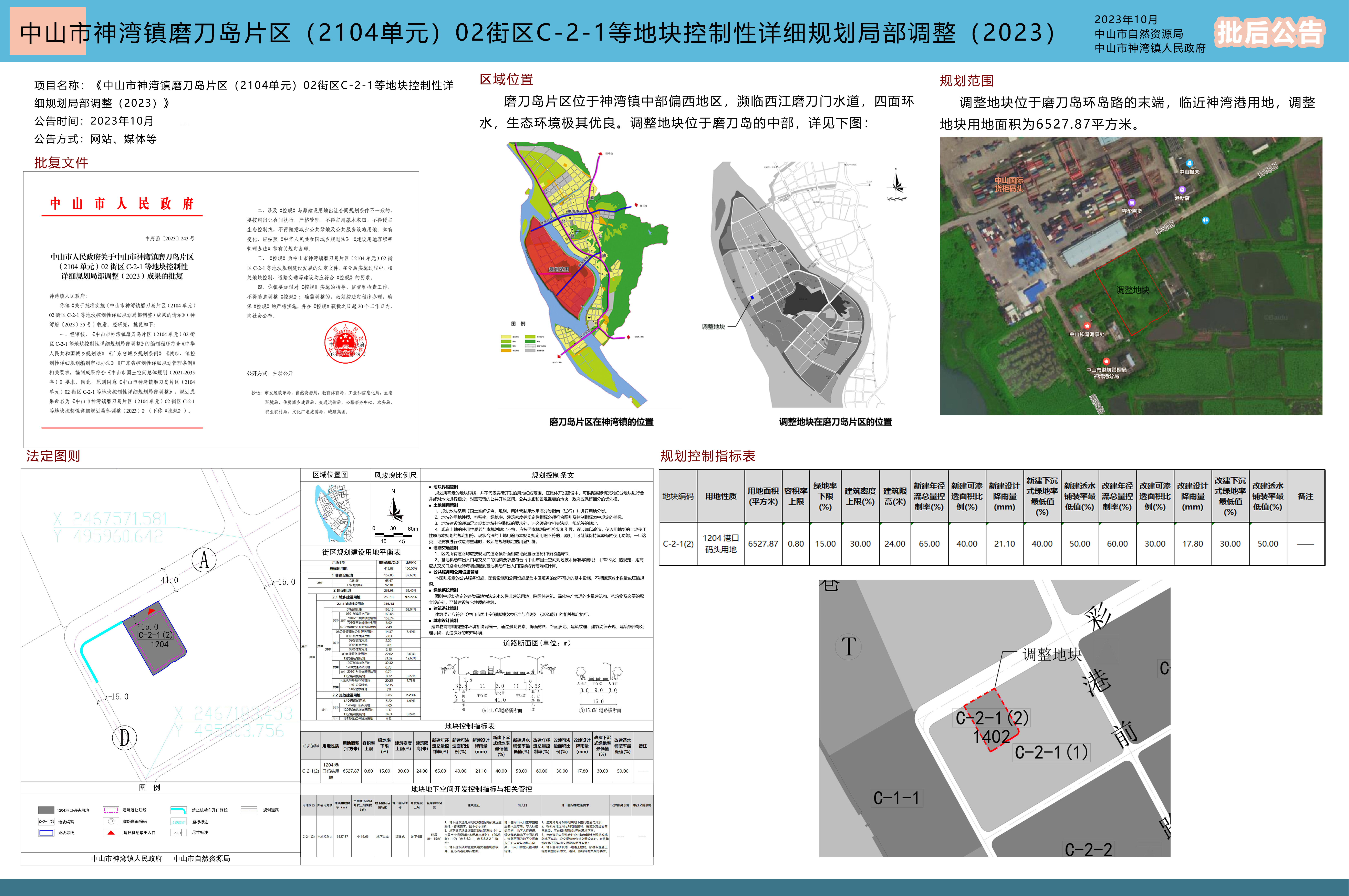 附件:《中山市神湾镇磨刀岛片区(2104单元)02街区C-2-1等地块控制性详细规划局部调整(2023)》批后公告
