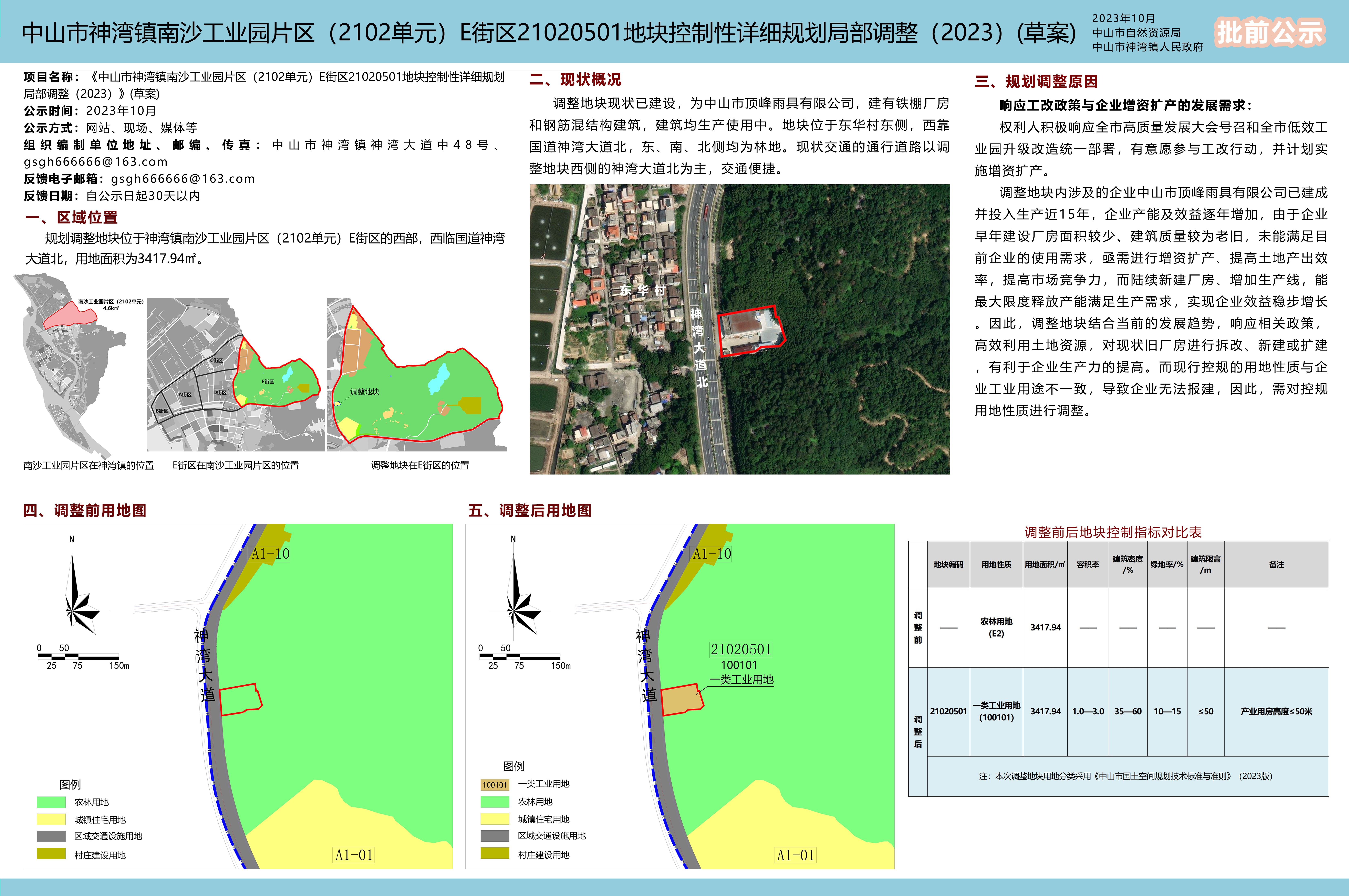 附件:《中山市神湾镇南沙工业园片区(2102单元)E街区21020501地块控制性详细规划局部调整(2023)》草案公示