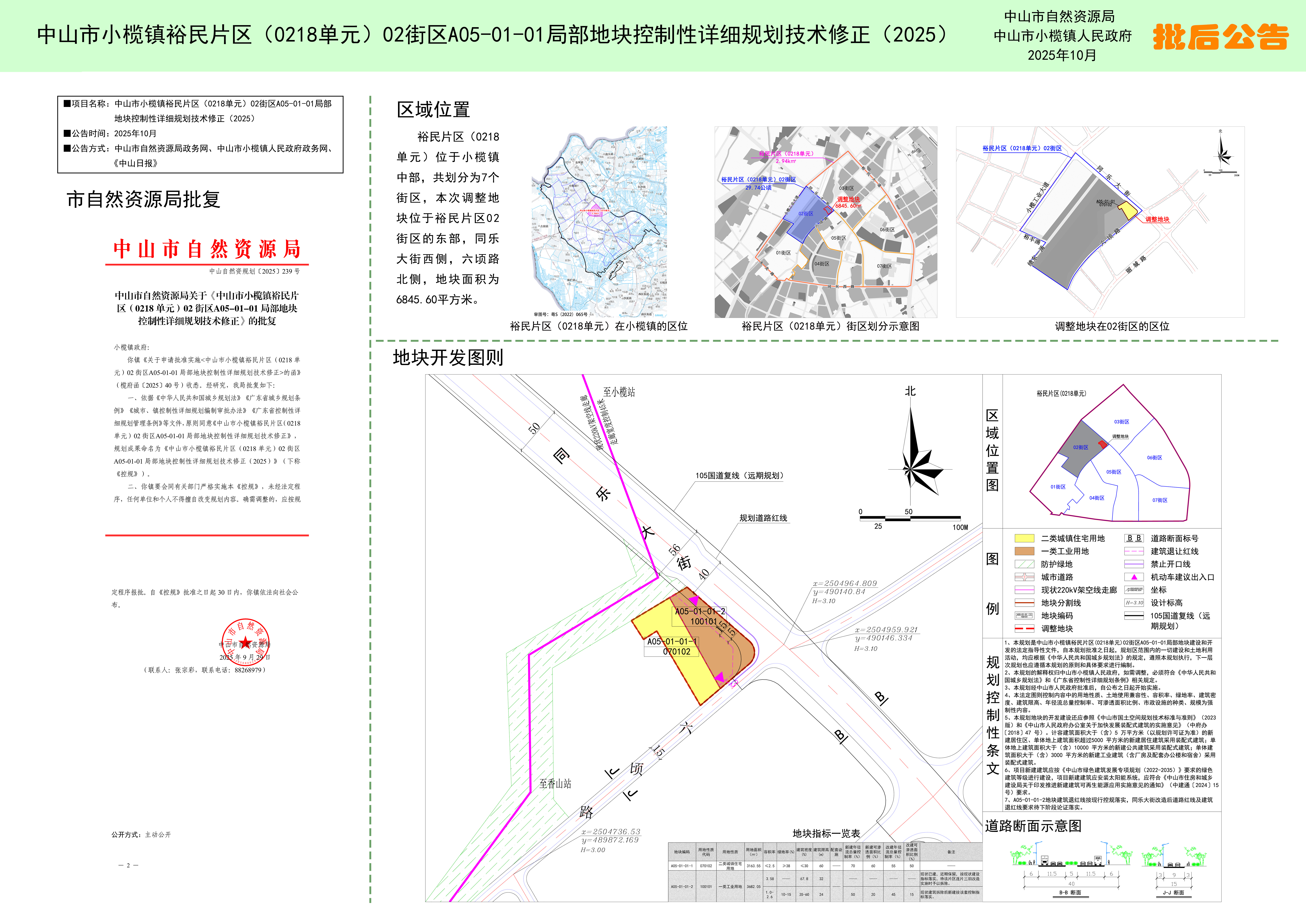 附件:《中山市小榄镇裕民片区(0218单元)02街区A05-01-01局部地块控制性详细规划技术修正(2025)》批后公告