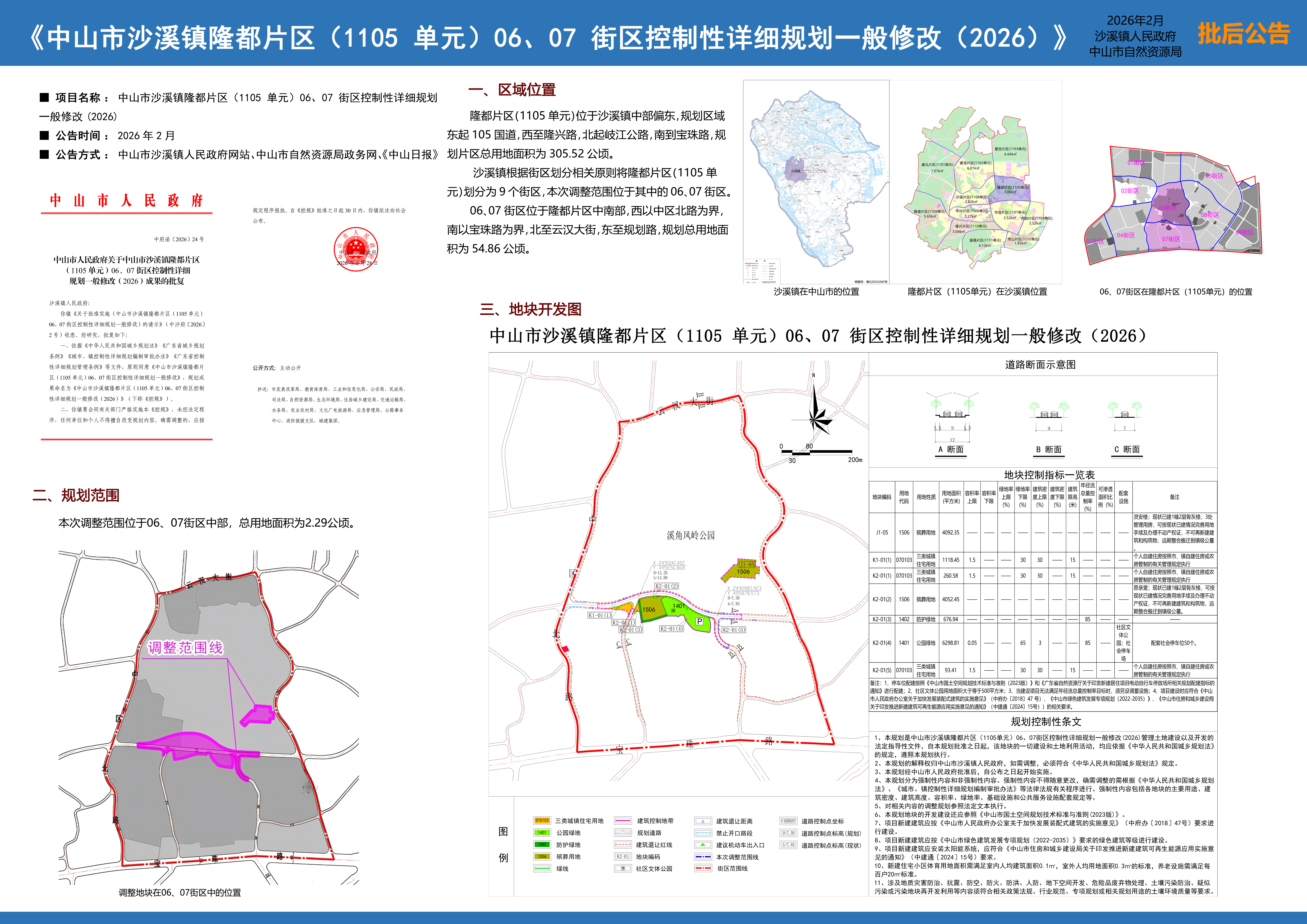 附件:《中山市沙溪镇隆都片区(1105单元)06、07街区控制性详细规划一般修改(2026)》批后公告
