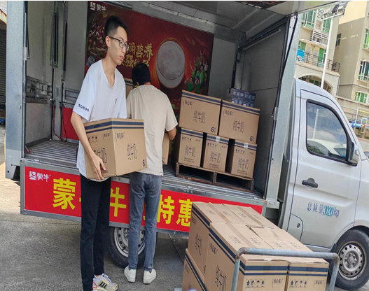 6月20日,沙溪供销社助农服务中心为当地某单位配送大米、粮油、牛奶等慰问品170份。