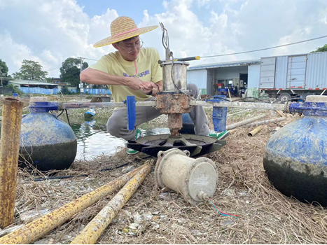 9月29日,三角供销社工作人员到该镇水产养殖基地开展增氧机检测维修服务。